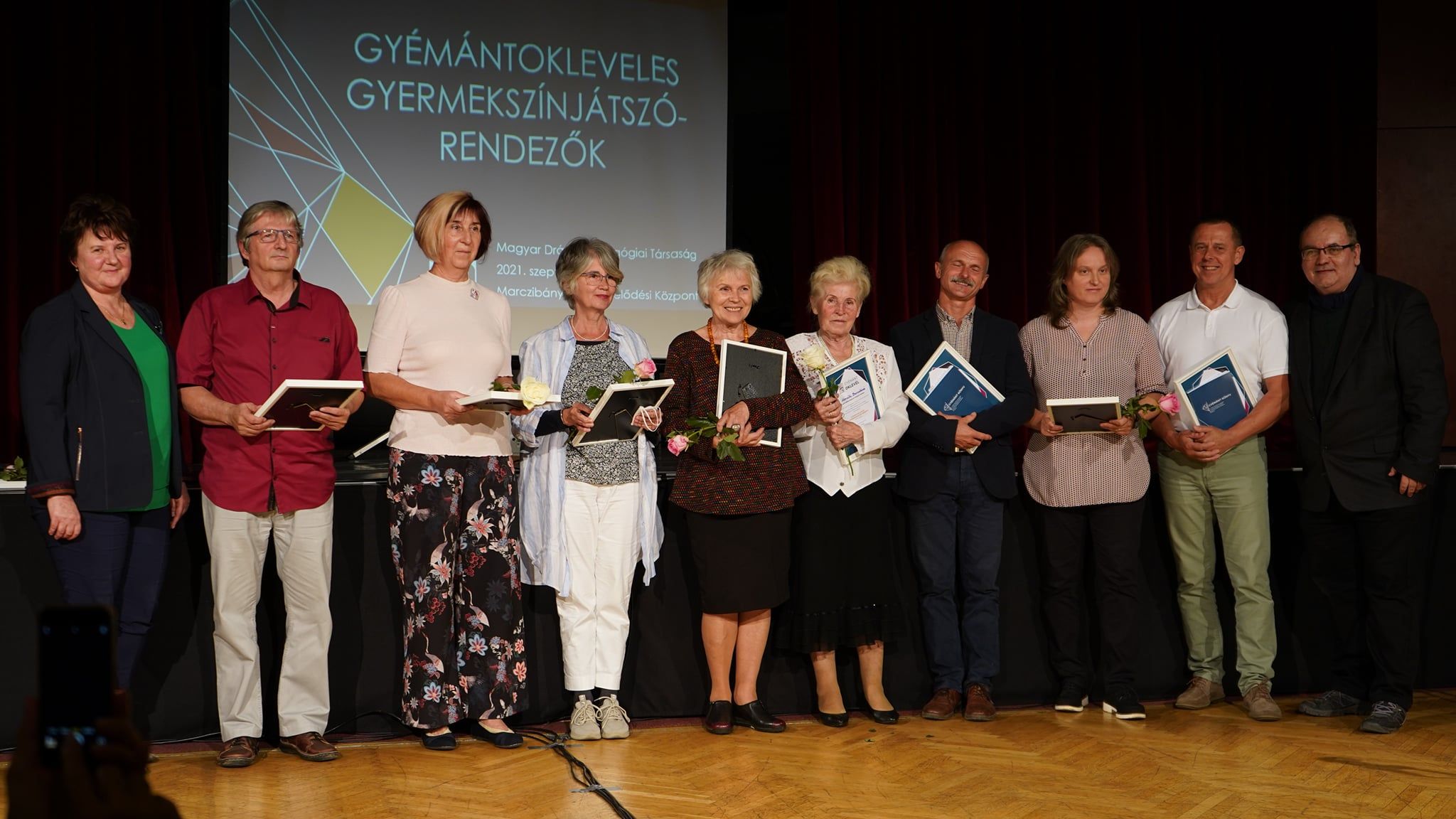 A Magyar Drámapedagógiai Társaság - a gyermekszínjátszók országos találkozóinak meghirdetője és fő szervezője gyémánt oklevéllel ismerte azoknak a kiváló csoportvezetőknek – rendezőknek a munkáját, akik 2000. január 1-től számítva legalább öt alkalommal arany minősítést kaptak a Weöres Sándor Országos Gyermekszínjátszó Találkozón.